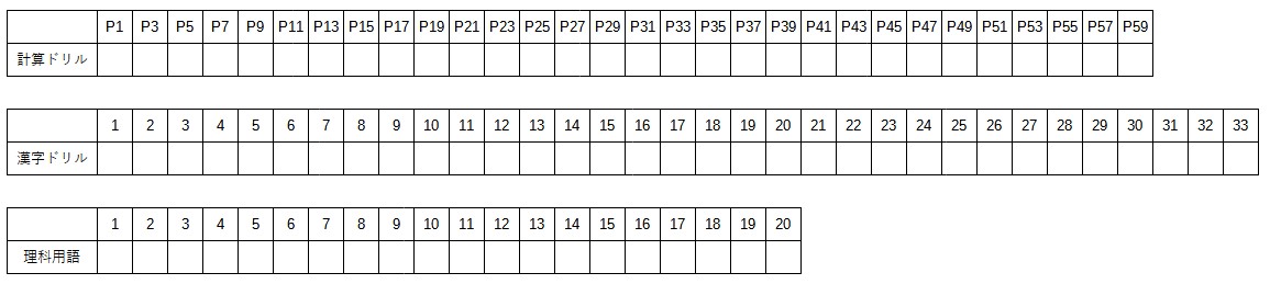 ドリルのこのページに取り組んだら、シール台紙のここの欄にシールを貼るみたいなやつです。学校や塾の壁や掲示板にはよく貼ってあります。