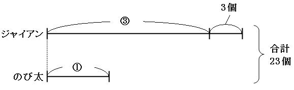 ①が5個にあたることが分かったので、これを元にジャイアンくんとのび太くんがもらったあめ玉のそれぞれの個数を求めましょう。