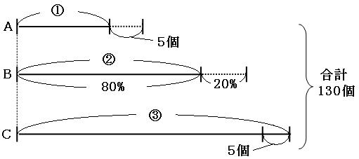 A・・・25個、B・・・50個、C・・・55個