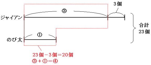 これを、さっきの線分図に書き加えて考えると、