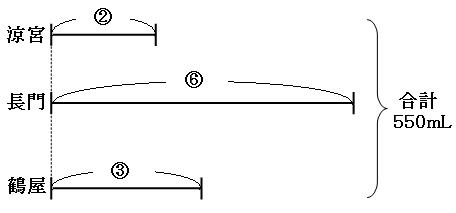 涼宮さん・・・100mL、長門さん・・・300mL、鶴屋さん・・・150mL