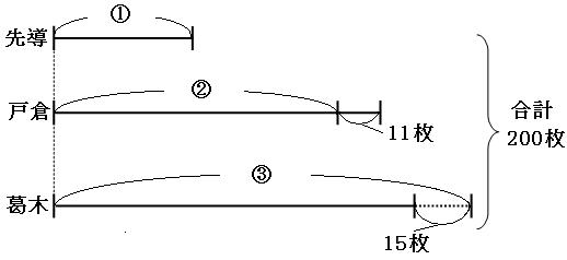 200枚-11枚+15枚=204枚