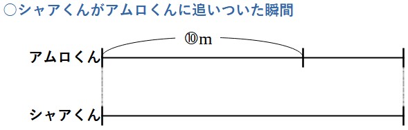 シャアくんが出発するまでにアムロくんはすでに10分間歩いています。この間にアムロくんが歩いた道のりは、