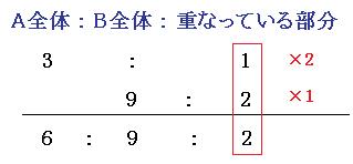 よって、A:Bは6:9です。簡単な整数の比に直して、