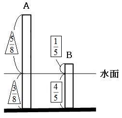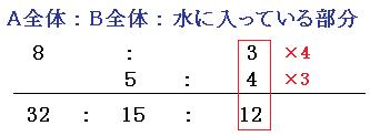 続いて「A全体の長さ:水に入っている部分の長さ」と、「B全体の長さ:水に入っている部分の長さ」を求めます。