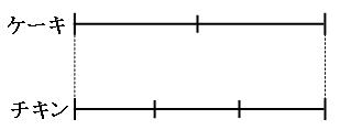 よって、「ケーキ1個の代金:チキン1個の代金:オレンジジュース1個の代金」は、