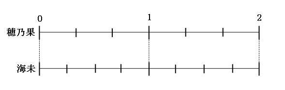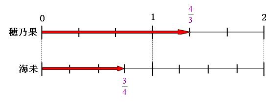 さらに、同じ時間で穂乃果さんは4歩、海未さんは3歩歩くことも図に書き加えます。