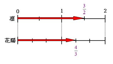 凛さんが2歩で走る距離を、花陽さんは3歩で走ります。凛さんが3歩走る間に、花陽さんは4歩走ります。