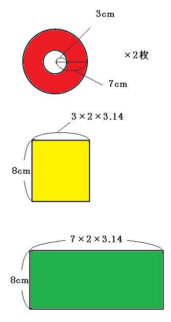 同じように考えて、一番外側の側面の横の長さは、7×2×3.14