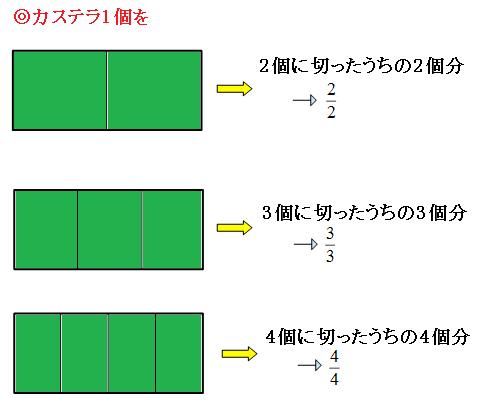 まずは、1を分数で表すとどうなるのか考えてみましょう。