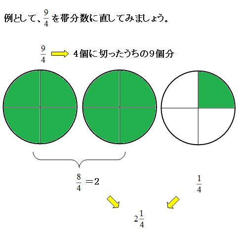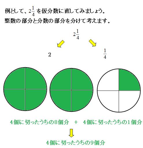 仮分数の分子の数=分母の数×整数の部分+帯分数のときの分子の数