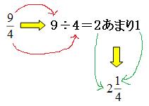 整数の部分と分数の部分を分けて、分数の部分は分子÷分母を計算します。