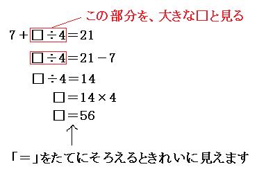 □が左にあればたし算を、□が右にあればひき算をする。 - わり算のとき