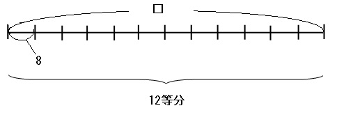 元の式「□÷12=8」のイメージは、「□個のものを12人に分けたら、1人8個ずつ配れた」という感じです。これを線分図に表すと下のようになります。