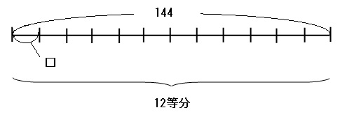 上の線分図を見ると、144を12で割れば□を求められることがわかりやすいですね。