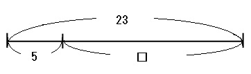 上の線分図を見ると、23から5を引けば□を求められることがわかりやすいですね。
