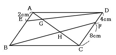 相似を使った図形の問題には、平行四辺形がよく登場するのですが、その平行四辺形の対角線を3つに分けなければならなくなることがあります。