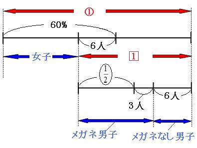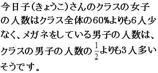 メガネをしていない男子は6人です。今日子さんのクラスの女子の人数は何人でしょう。
