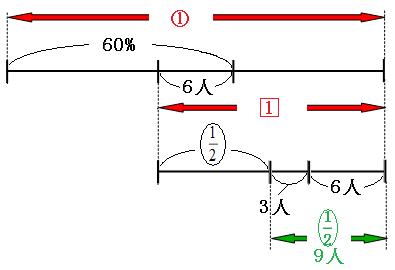 まずは□の方に注目していきます。線分図を見て、割合と人数の両方がわかりそうな部分を探します。