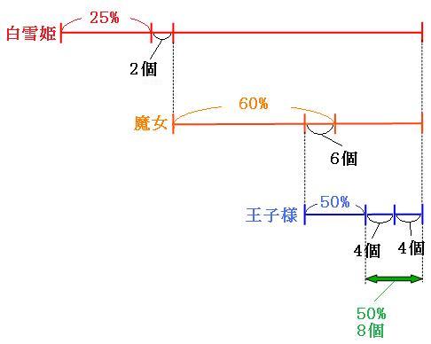 50%が8個にあたることが分かりました。青い線分図全体のりんごの個数(青のもとにする量)を求めましょう。