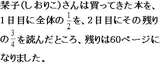 1日目に読んだ残りのページ数(□のもとにする量)を求めましょう。