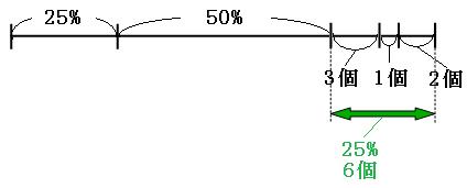 25%が6個にあたることが分かりました。真さんがもらったチョコの個数(もとにする量)を求めましょう。