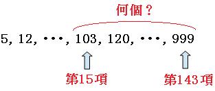 気をつけてほしいのは、単純にひき算をしてしまうと、初めの第15項を数えていないことになってしまうということです。植木算の考え方ですね!
