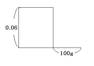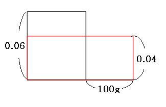 食塩水の重さはわからないので、横の長さは適当に書いておきます。加えた水は濃さ0%として、まずは6%の食塩水と、水100gの面積図を書きます。