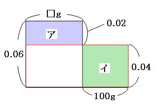 混ぜる前も、混ぜた後も、食塩の重さの合計は同じなので、赤い長方形から飛び出している部分と、へこんでしまっている部分の面積は同じです。