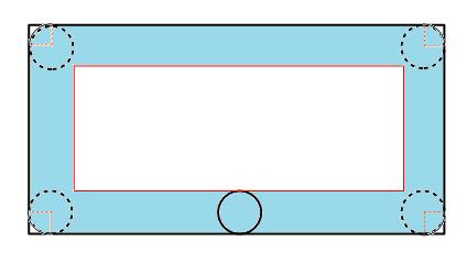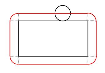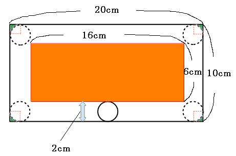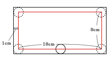 直線だけなので楽勝です。内側を回った分、長方形の辺よりも短くなっているので気をつけてください。