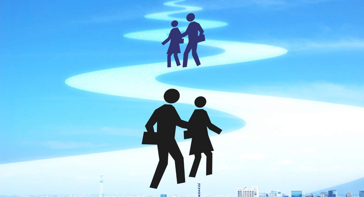 ふたりは同じ向きに進んでいます。
