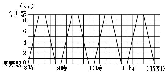 (1)一夫は、今井駅に着くまでに何回バスとすれ違ったでしょう。