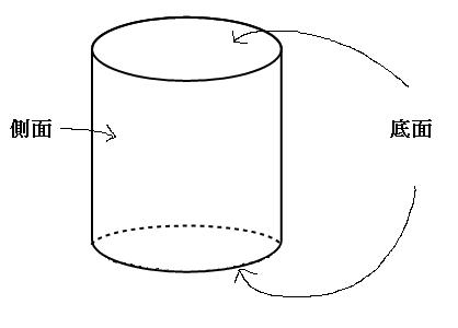 底面の形によって立体の名前が変わります。上の図は底面が円なので円柱、底面が三角形だったら三角柱、底面が五角形だったら五角柱、底面が百八角形だったら百八角柱と呼ばれます。