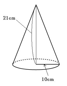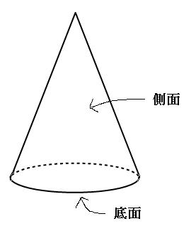 こちらも底面の形によって立体の名前が変わります。上の図は底面が円なので円錐、底面が三角形だったら三角錐、底面が五角形だったら五角錐、底面が百八角形だったら百八角錐と呼ばれます。