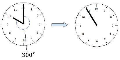 10時ぴったりのとき、長針と短針の間の角度は300°です。