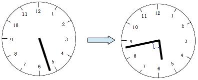 時計算のポイントは、1分間で長針は短針に5.5°ずつ追いつく、またははなれていくことです。