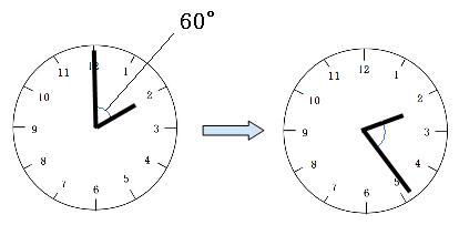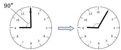 時計算のポイントは、1分間で長針は短針に5.5°ずつ追いつく、またははなれていくことです。