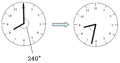 8時ぴったりのとき、長針と短針の間の角度は240°です。