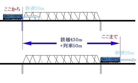 図のように、列車が走った道のりは鉄橋の長さ+列車の長さなので