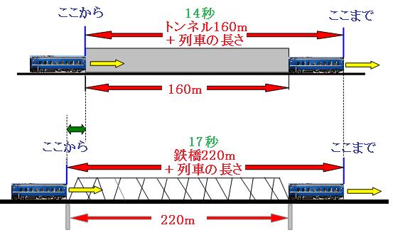 トンネルを通りすぎるのには14秒かかっていますので、その間に列車が進んだ道のりは、