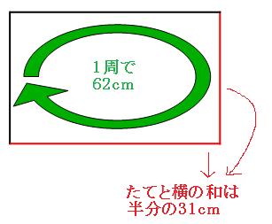 まわりの長さが62cmなので、この長方形のたての長さと横の長さの和は、