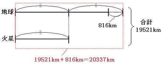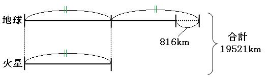 線分図を見ると、これは火星の直径になっています。地球の直径は、火星の直径の2倍よりも816km短いので、