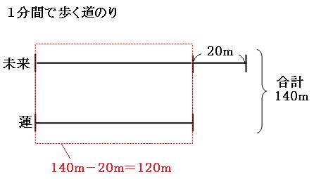 つまり、1分間で2人が歩いた道のりの和は140mです。