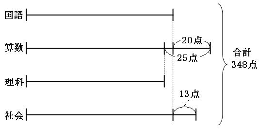 4教科の平均点が87点だったので、4教科の合計点は、(平均の解説はこちら)