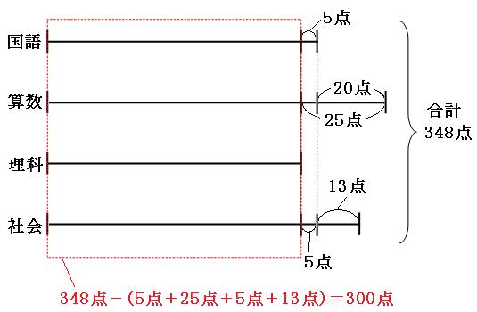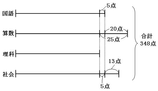 算数の点数は、この赤い四角から25点飛び出しているので、