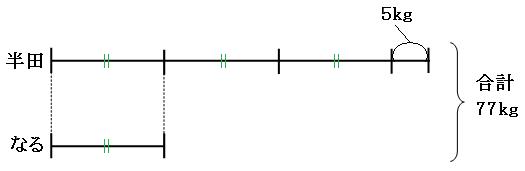半田くんの線分図は18kgが3個分と、さらに5kg出っ張っているので、