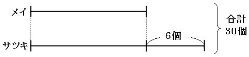 サツキさんはメイさんより6個多く拾い、2人が拾ったドングリの個数の合計は30個でした。サツキさんは何個のドングリを拾ったでしょう。