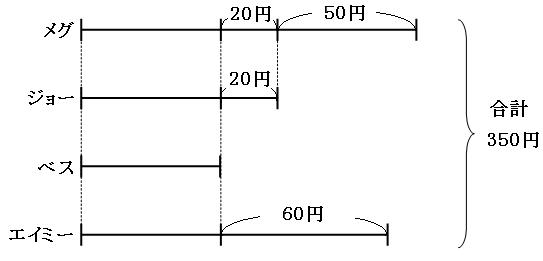 (基本問題3)メグさん、ジョーさん、ベスさん、エイミーさんの四姉妹は、お母さんにプレゼントを買うことにしました。