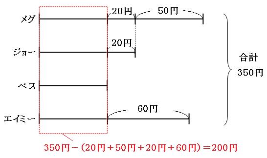 問題文を読んでも頭がこんがらがってしまいます。ゆっくりと読みながら、線分図を書いてみましょう。